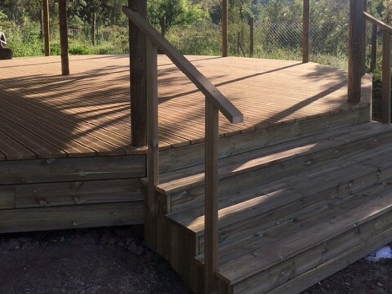 Spring 2024: the client wanted a pergola with 8 corners, for yoga retreats. The surface was not straight, but of course the decking had to be level. Big job with a lot of thought, but very successful!